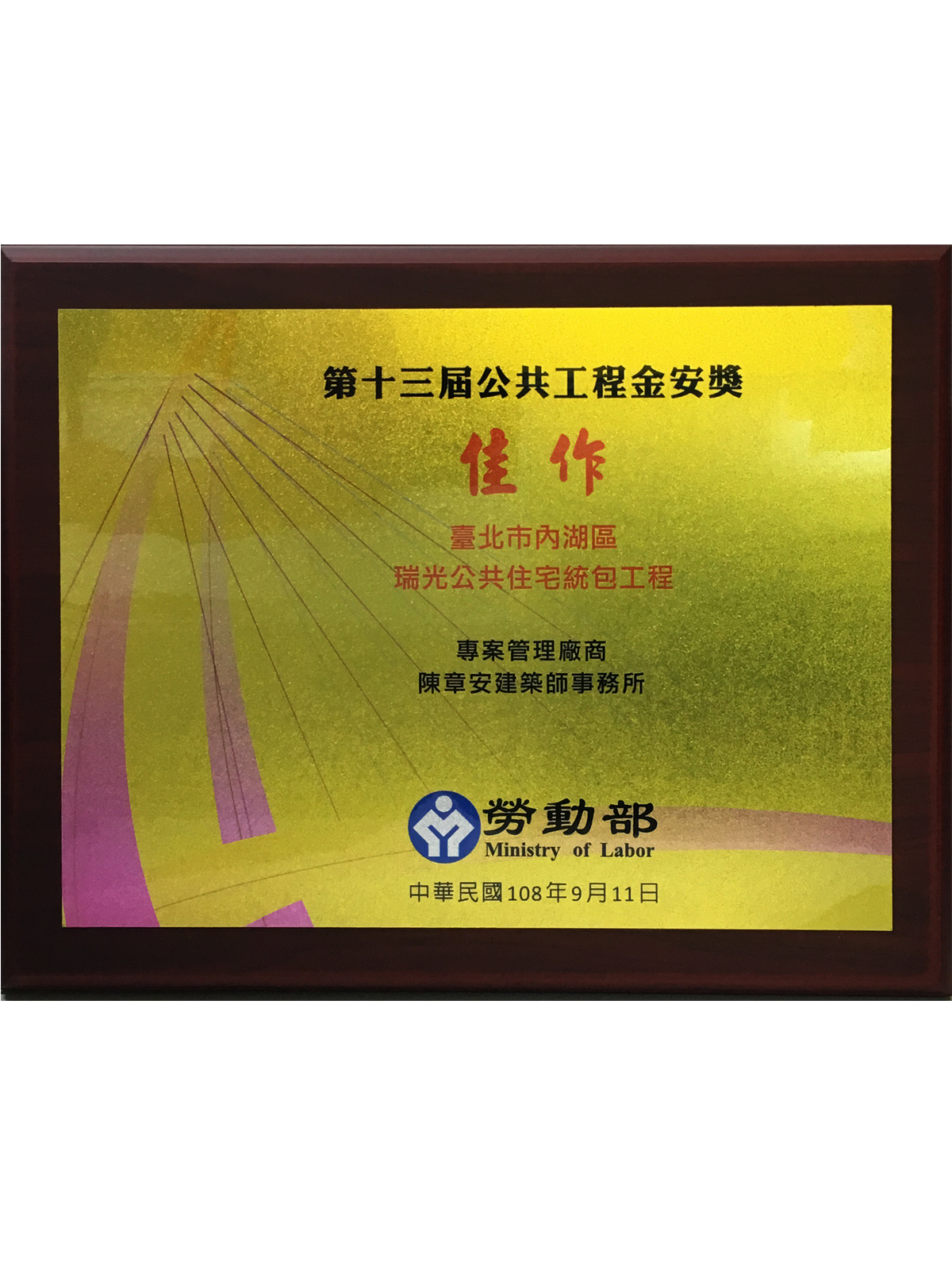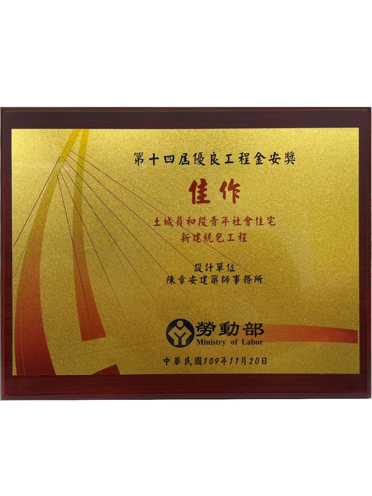 綜合卓越成就獎 2023年 / 最佳規劃設計類 2023年 2022年 2018年 2016年 2010年 / 最佳社會住宅類 2022年 2021年 2019年 / 最佳施工品質類 2023年 / 休閒建築類 2016年
